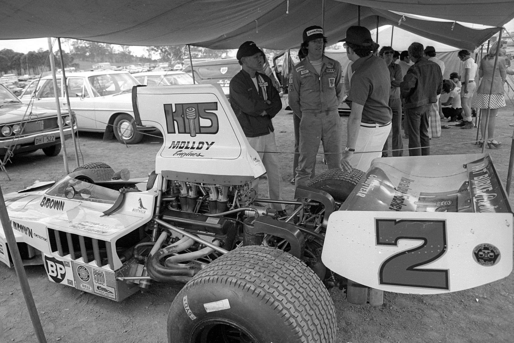 Tornado 2 Chev, the most successful form of the Lou Abrahams/Ted Gray/Jack and Bill Mayberry two racers. Bill and Lou are at far left.