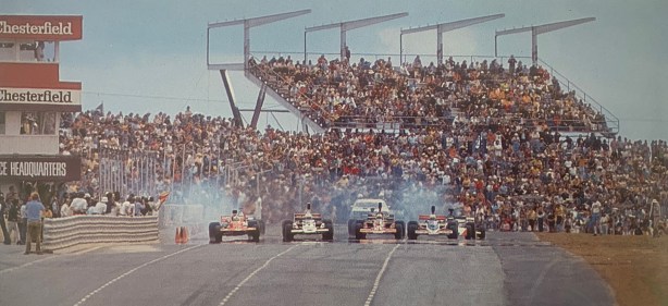 Jones qualified second behind Ken Blake’s RG500, ahead of Ago on the 5.3km circuit. In the race he muffed the start and finished fourth behind the victorious Blake, then Agostini with Greg Johnson on another RG500 in third.