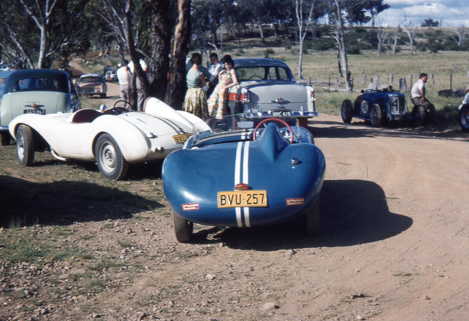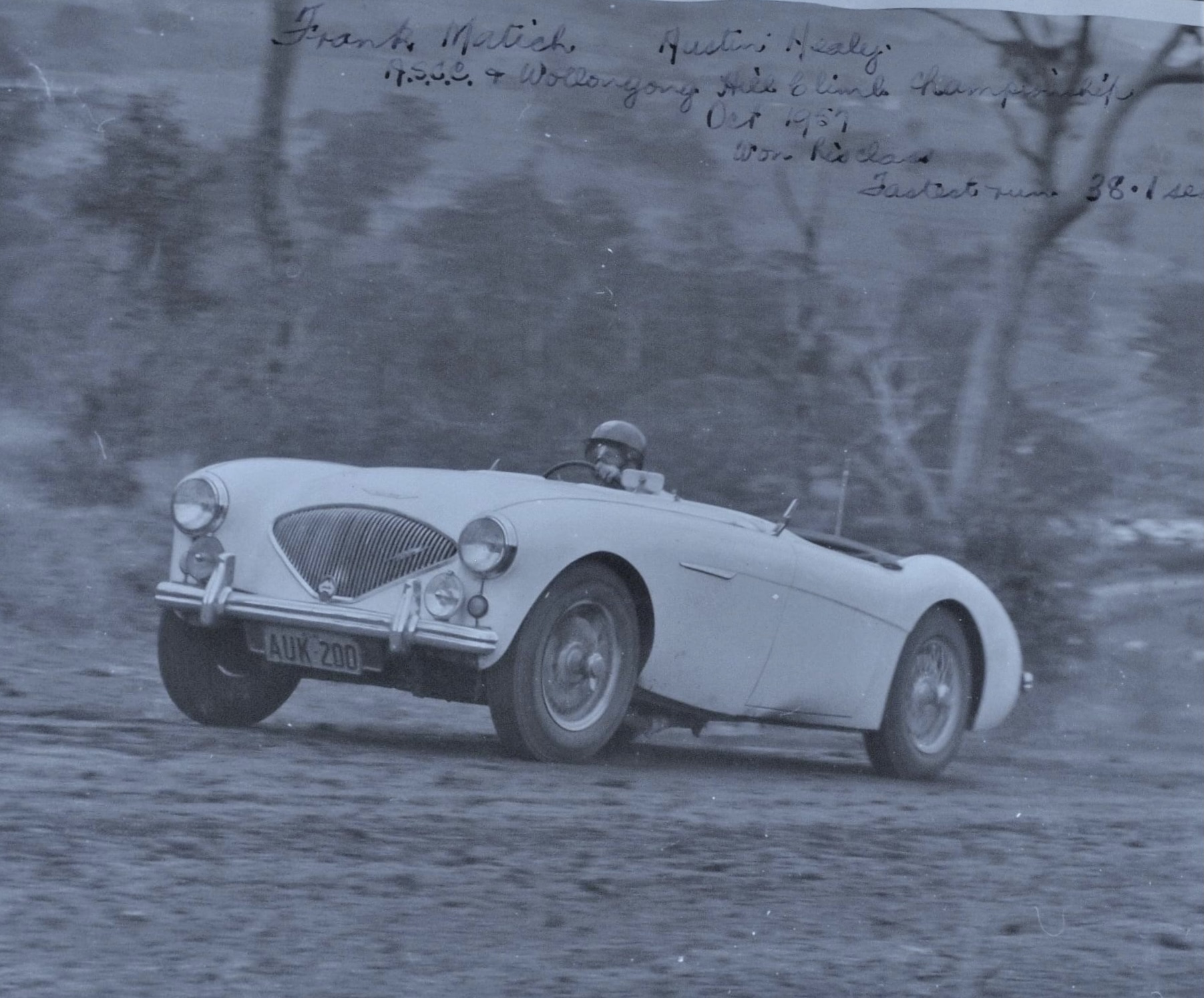 They show his ‘road-registered family car, the Healey 100/4 with LJC Motors bored out 3-litre engine at Huntley’s Hill in 1957’ for the Australian Sports Car Club Wollongong Hillclimb Championship..