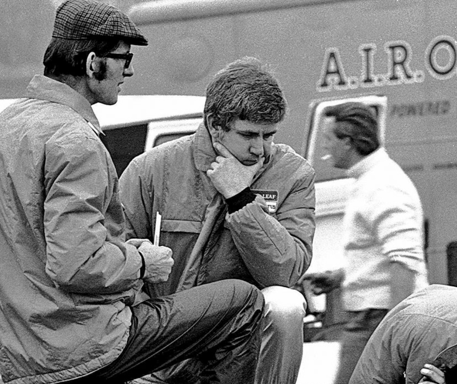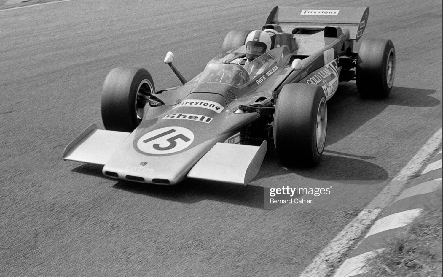Dave with Lotus Team Manager Peter Warr at Mallory Park during 1971. Walker was the the most successful of the Gold Leaf Lotus drivers that season. Emerson Fittipaldi and Reine Wisell didn’t win a GP, the first time in about a decade Lotus hadn’t won a championship round. Walker’s ascent to the F! team in 1972 was in part to placate British Tobacco.