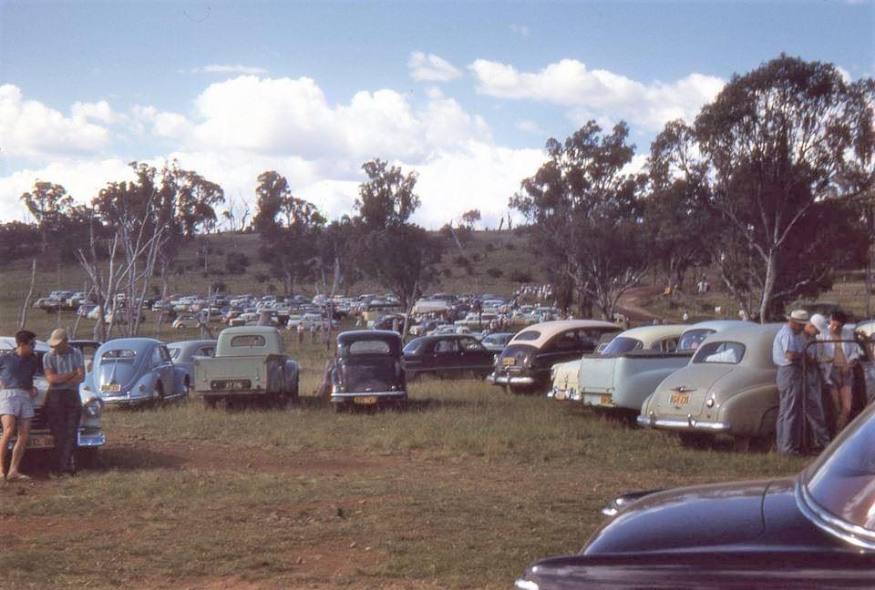 The first shot shows John French’ Holden 48-215 at the far left, then the white RAWGS sportscar , the beautiful blue JWF Milano and the Barnes MG TC Spl at far right- thanks to Dick Willis for the IDs. The photographs below are from the carpark looking back up the hill.