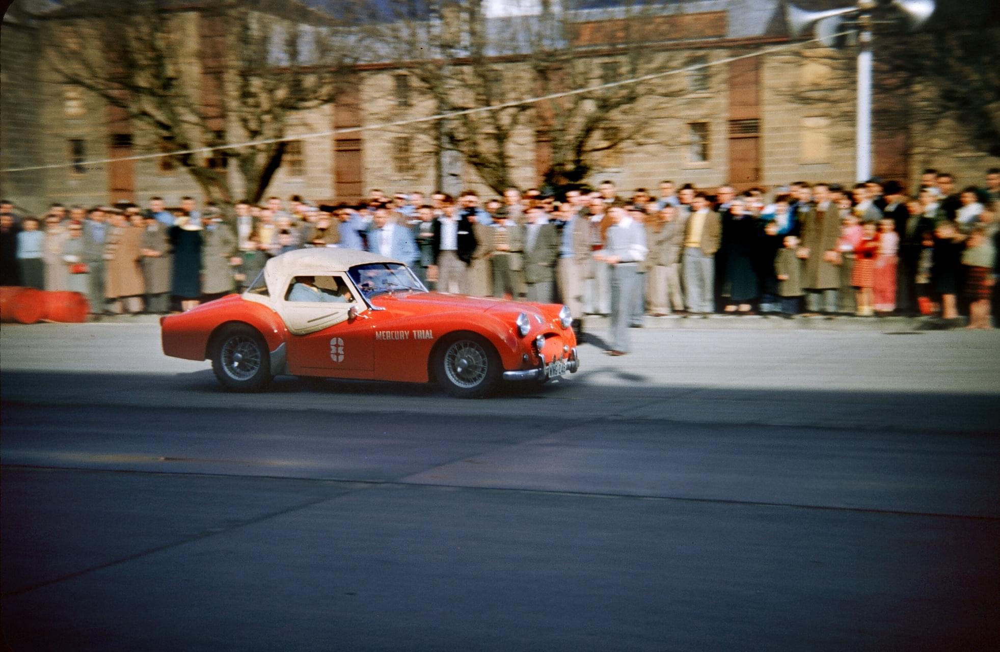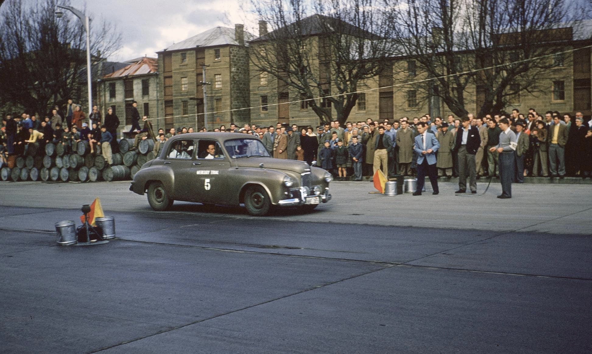Grant Twining wrote in the marvellous Historic Racing Car Club of Tasmania’s FB page that ‘The 1956 Mercury Trial (The Mercury is Hobart’s local rag) was a big thing at the time. The Second World War was still in recent memory and Australia was just starting to recover economically from the austere post war years. In little old Tasmania, the well publicised ‘Mercury Trial’ was a significant event and eagerly followed by the public. Bob Young was on hand to capture these images in Salamanca Place’ dockside in Hobart.