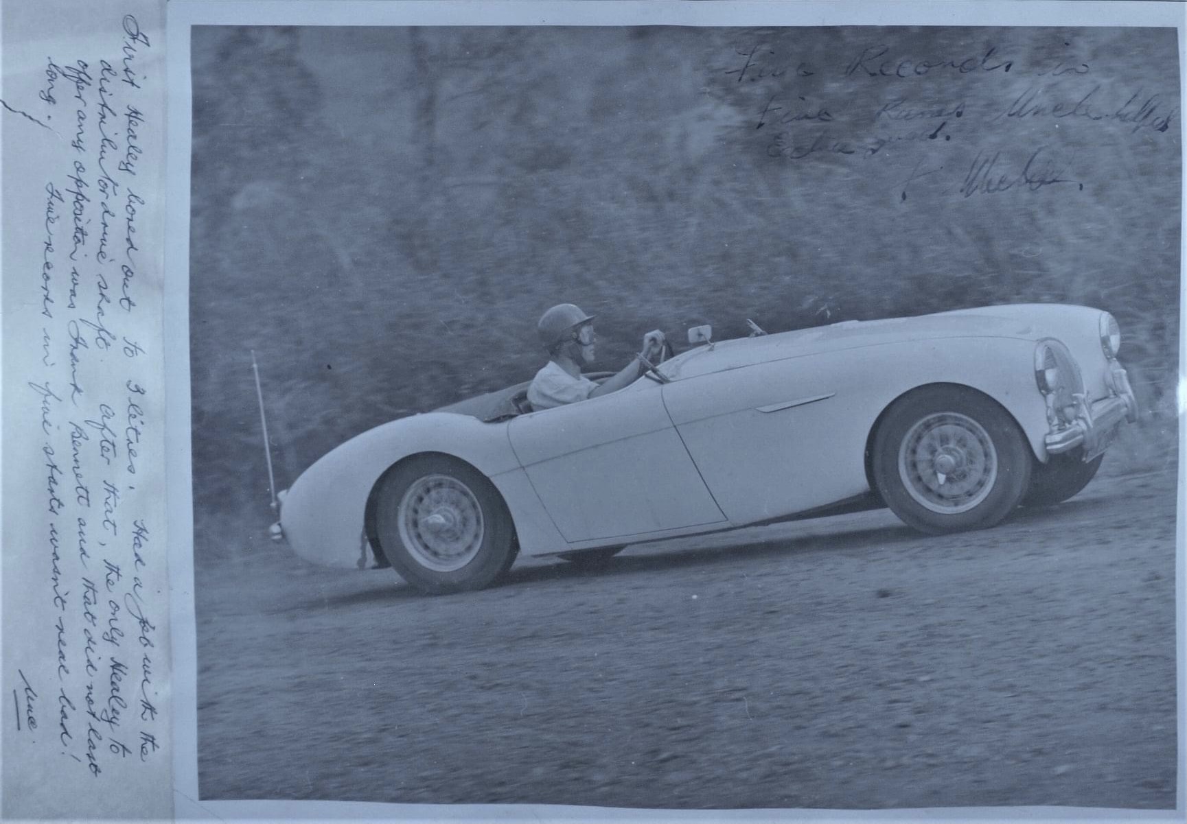 ‘First Healey bored out to 3-litres. Had a job with the distributor driveshaft. After that the only Healey to offer any opposition was Frank Bennett and that did not last long. Five records in five starts was not real bad’ is the note FM wrote to his friend Alan Cummine, to whom we are indebted for these shots.