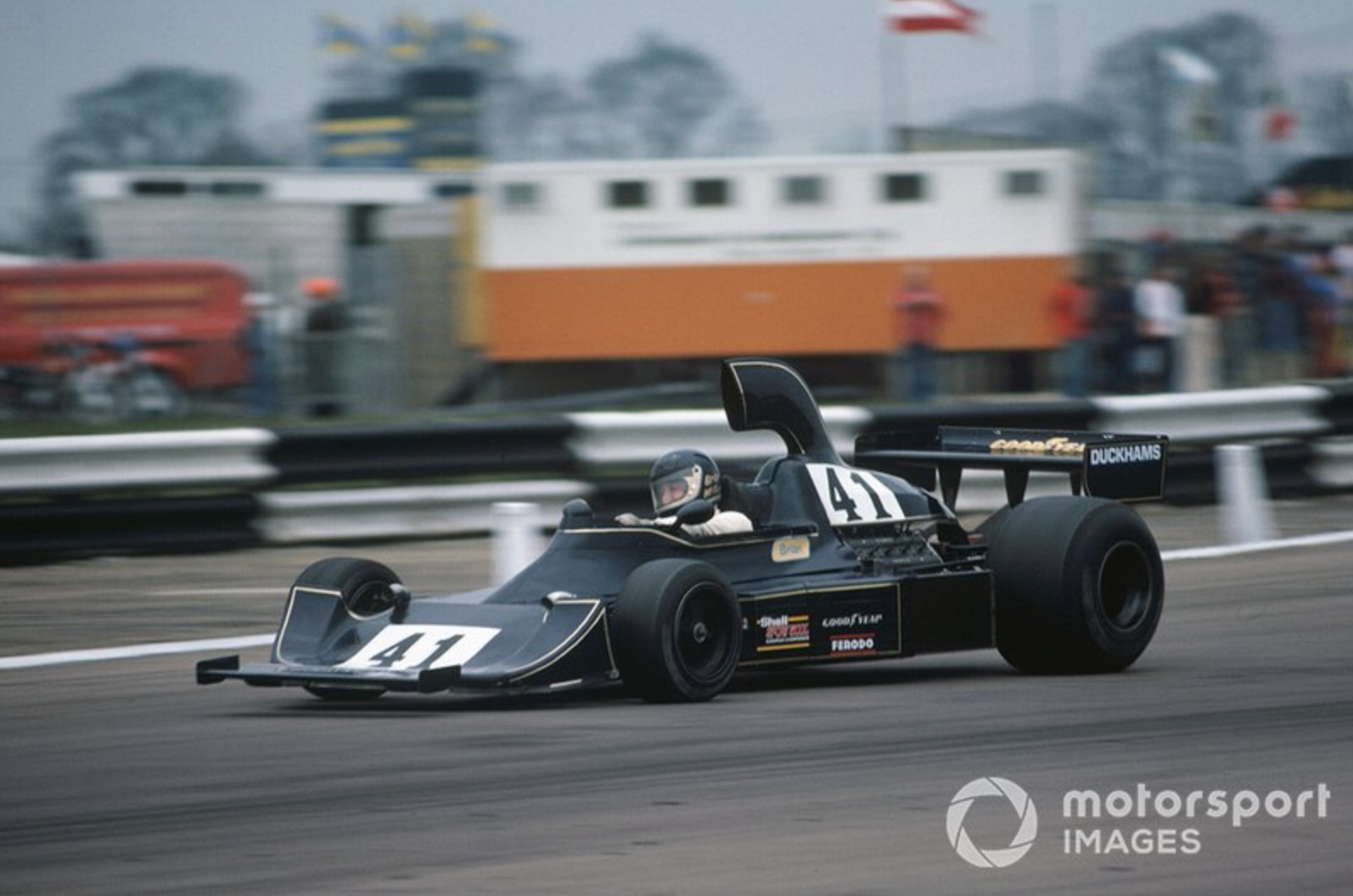 Brian McGuire aboard his Williams FW04 Ford during the April 1976 BRDC International Trophy at Silverstone.