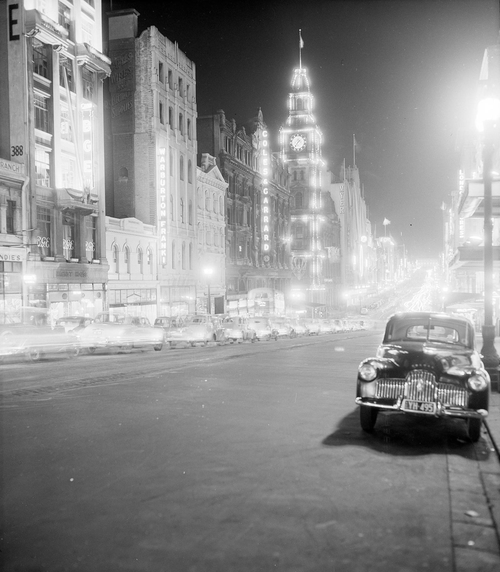 Marvellous shot of a Holden 48-215 in Bourke Street, Melbourne in 1959.