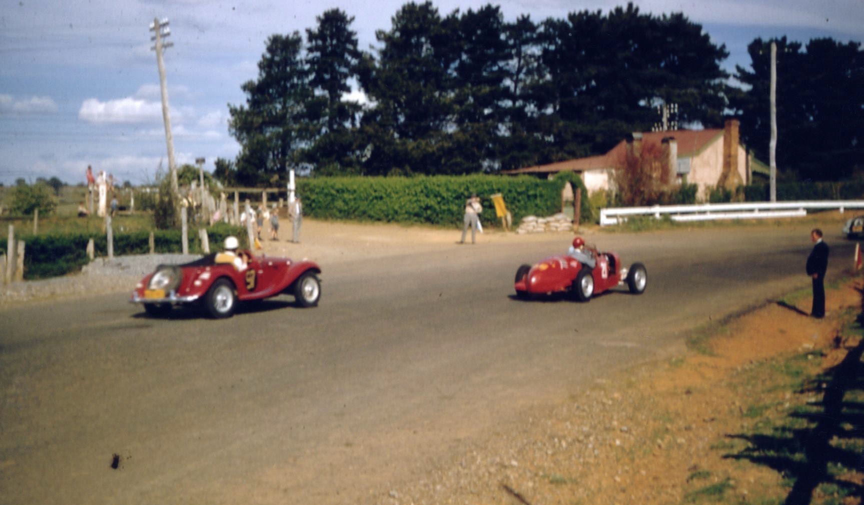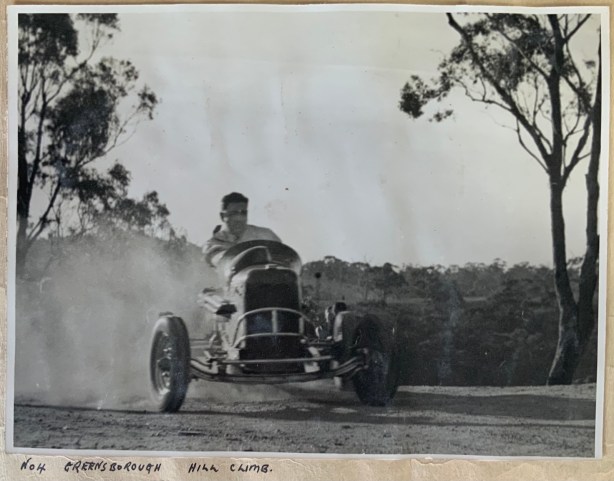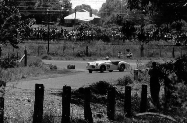 They show his ‘road-registered family car, the Healey 100/4 with LJC Motors bored out 3-litre engine at Huntley’s Hill in 1957’ for the Australian Sports Car Club Wollongong Hillclimb Championship..