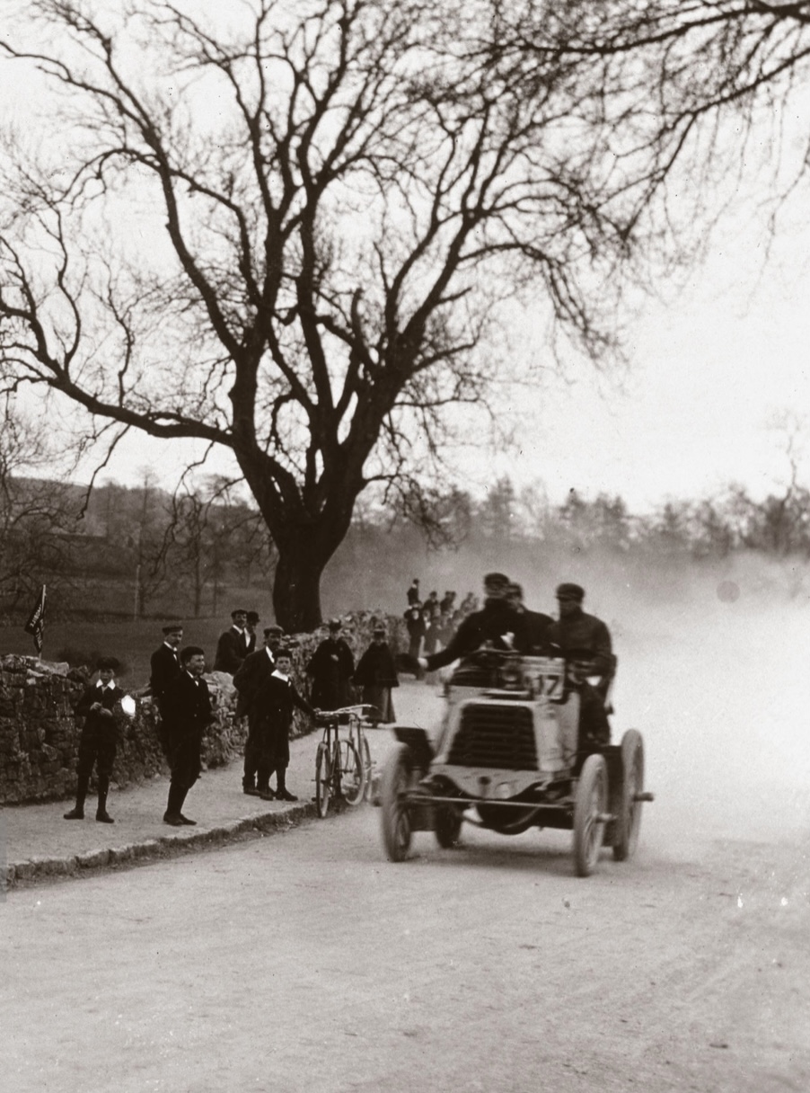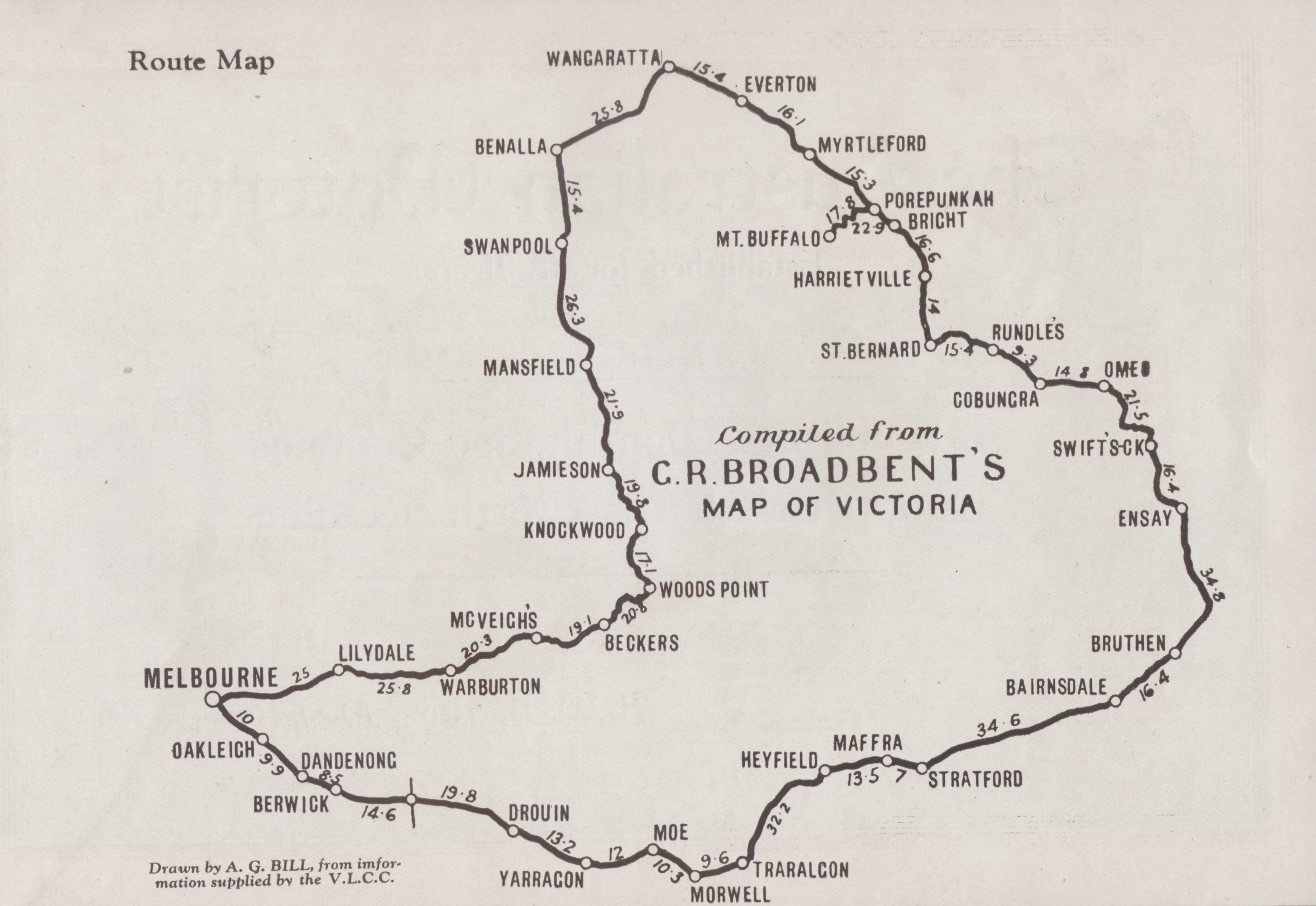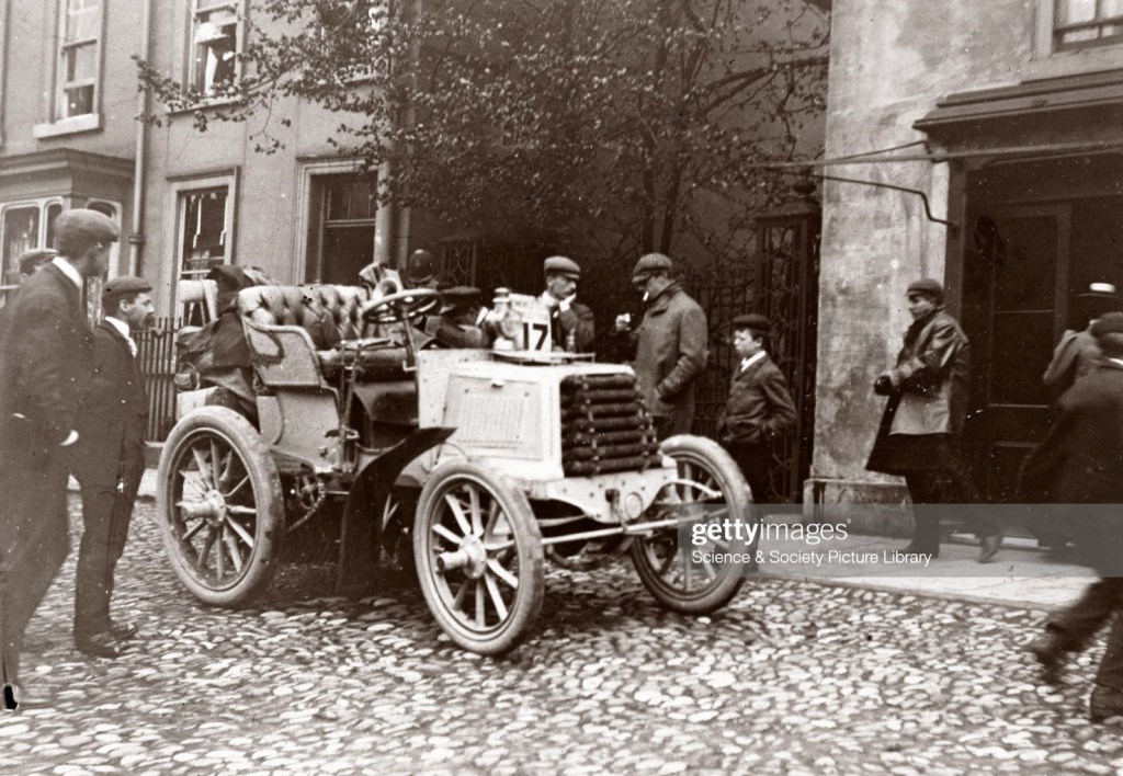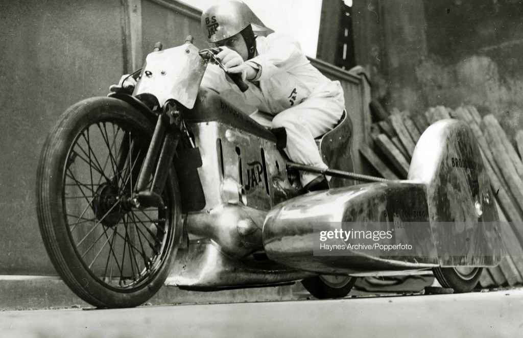 Davison with suit, tie and hat about to have some fun! A road trip in his racer from Port Melbourne to Armadale, 10 km or so on built up inner urban Melbourne roads (Davison)