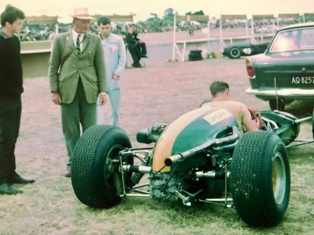 Brabham went like a rocket at Longford, the 1965 Tasman’s final round, he made a cautionary stop after giving Roly Levis a love-tap when the Kiwi locked a brake going into Mountford.