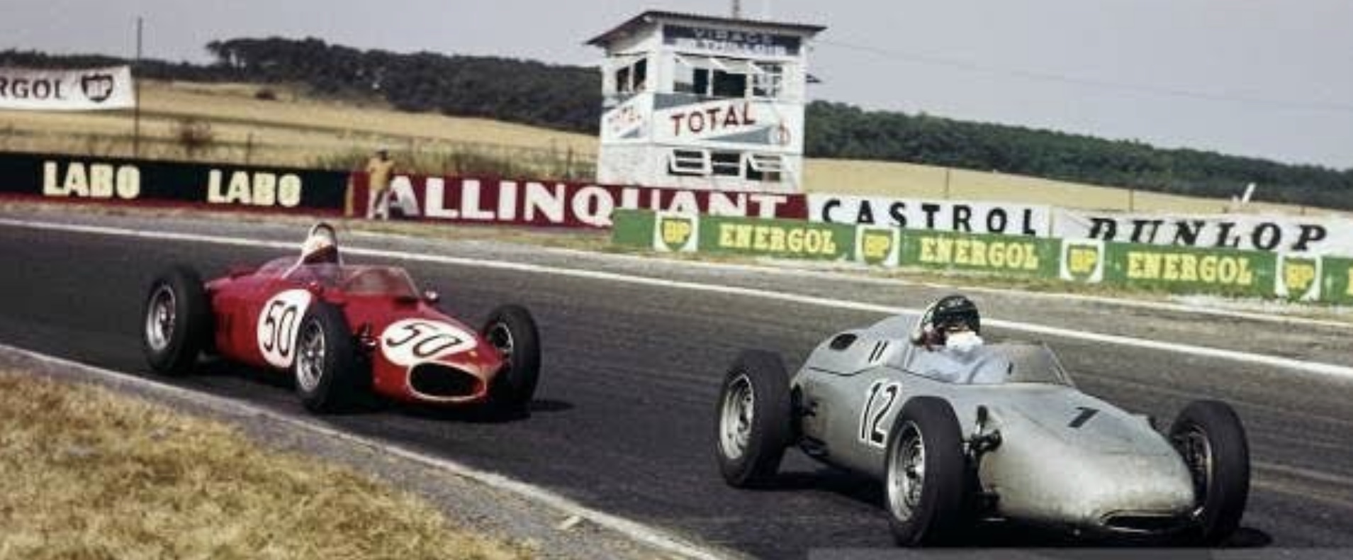 Progressively the challengers fell away leaving a man-on-man battle which went on for many laps, with the lead changing by the lap between Dan Gurney – one of the finest drivers of the era – and still to win his first championship Grand Prix, and GP debutant Giancarlo Baghetti.