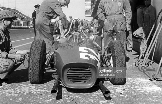 Despite the presence of the-greats, Baghetti popped the Ferrari into second slot on the grid behind Gurney on pole. He didn’t make a great start, appearing in seventh place at the end of the first of 56 laps, but used the power of the car to progress forward through the field to lead Gurney and Surtees by the end of the sixth lap.
