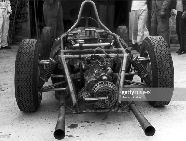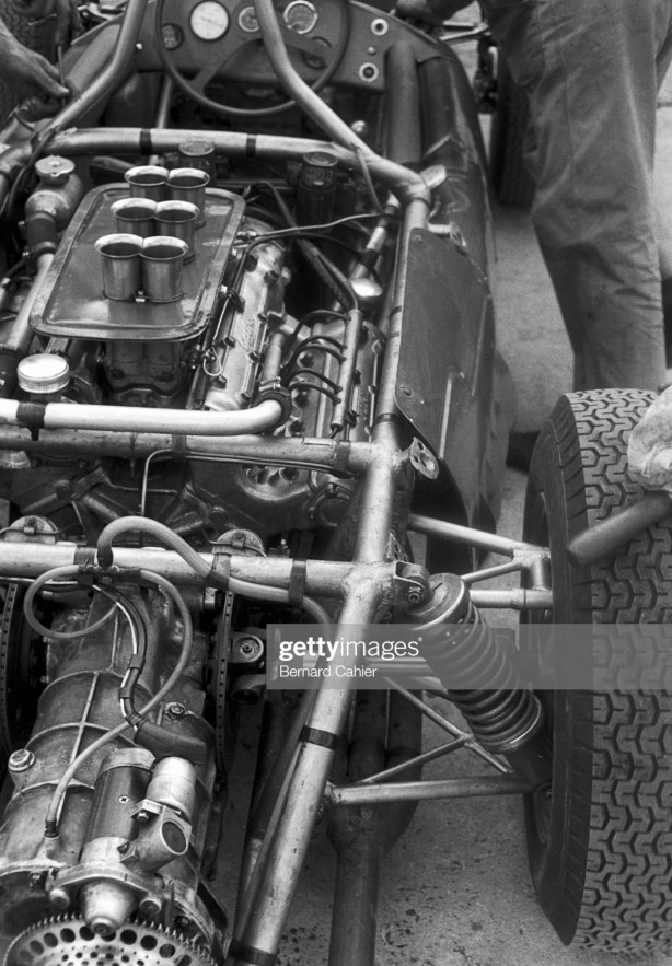 Doug Nye described the chassis thus ‘The multi-tubular chassis itself was crude and hefty looking, not as unimpressive as a Cooper’s – not least of all its tube runs were straight – but not a patch on the lightweight lattice of a Lotus, BRM or even a Porsche.’ Big, butch, beefy and crude the chassis was, but it certainly did the job in 1961. It was only when the chassis sophistication of the Brits was harnessed to the power of the Coventry Climax and BRM V8s in 1962 that the class of ’61 became the dunce of ’62.