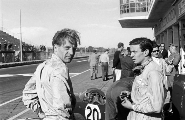 A couple of happy-chappies after the conclusion of the Pau GP on April 17, 1966. Jack and Denny finished in line astern aboard Brabham BT18 Hondas, with five-tenths of a second between them. Back in third, nearly 1 1/2 minutes adrift was Graham Hill in John Coombs’ Brabham BT16 BRM P80. Brabhams filled six of the top ten placings.