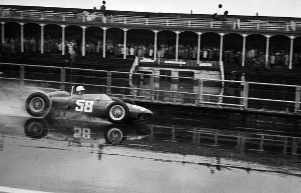 Dry practice at Aintree, Baghetti from Von Trips, the winner, chassis 0008 from 0004. The former was scrapped after this race, the latter destroyed in Taffy’s horrific accident at Monza in September.
