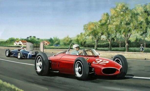 The entry was devoid of championship front runners on this occasion, they were otherwise engaged at Monaco, Stirling Moss in one-of-those drives won the race aboard Rob Walker’s Lotus 18 Climax, one of three championship events which didn’t go to the 156 that season. The German GP also fell to Maestro Moss in the nimble, less powerful Lotus 18, and at Watkins Glen Innes Ireland won the first GP for Team Lotus, and himself, aboard a Lotus 21 Climax.