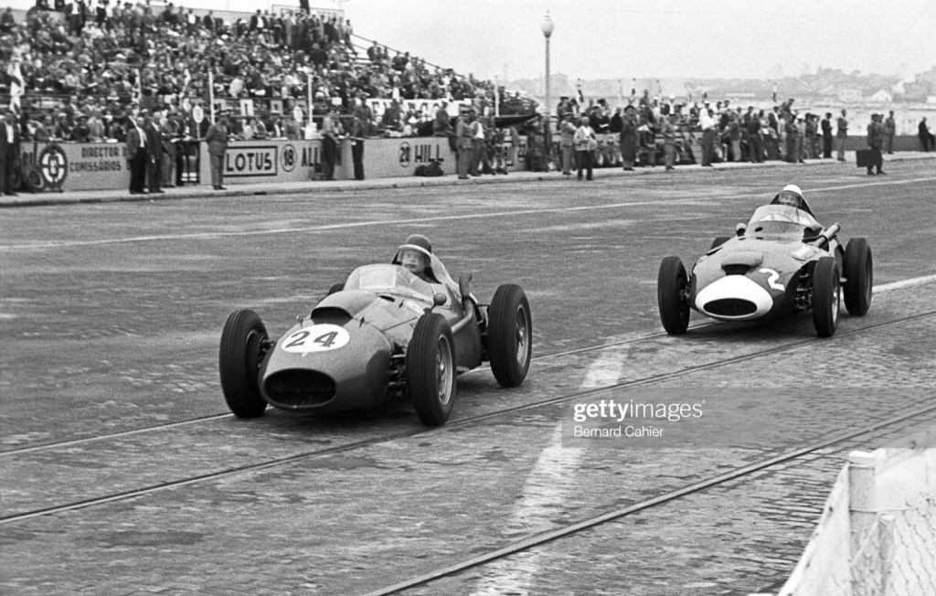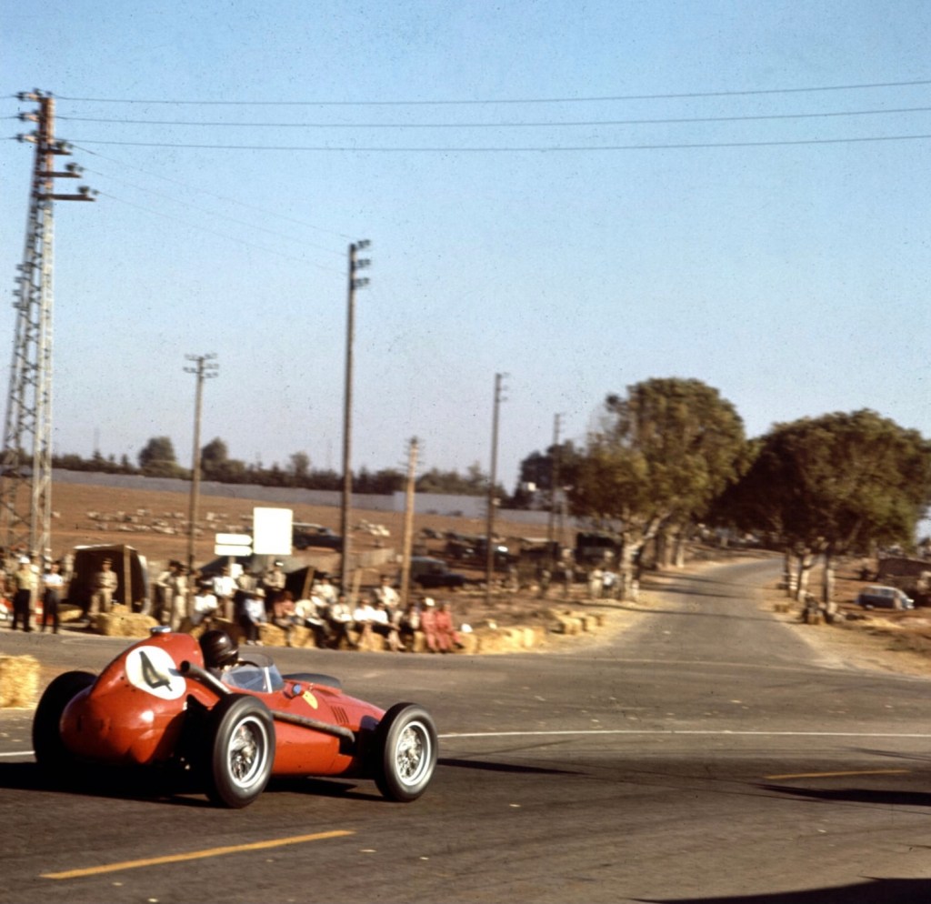 Brooks’ Vanwall won from Hawthorn at Monza, while Moss had a gearbox failure. In Morocco, Hawthorn put his car on pole from Moss, in the race the positions were reversed. Mike took the title by a point from Stirling in a season in which the best five placings were counted.