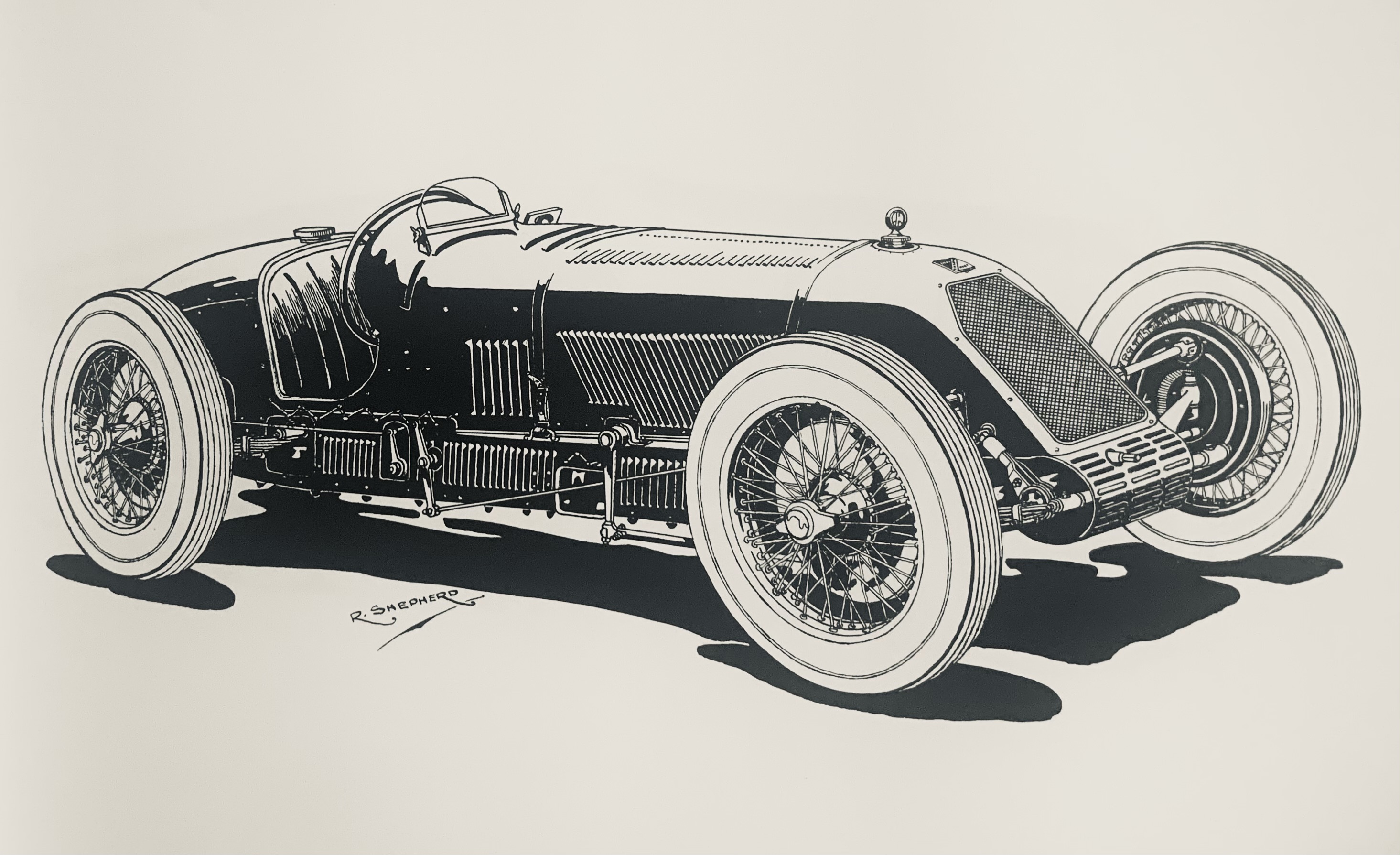 I’ve always been blown away by Shepherd’s work when I have tripped over it. Discussions with Bob King about the Miller led us to his copy of Graham Howard’s book (Racing Cars Through The Years) of Shepherd’s drawings published in 1993. Diana Davison/Gaze made available the Davison Family Collection of Shepherd images to Howard to allow the book to be published.