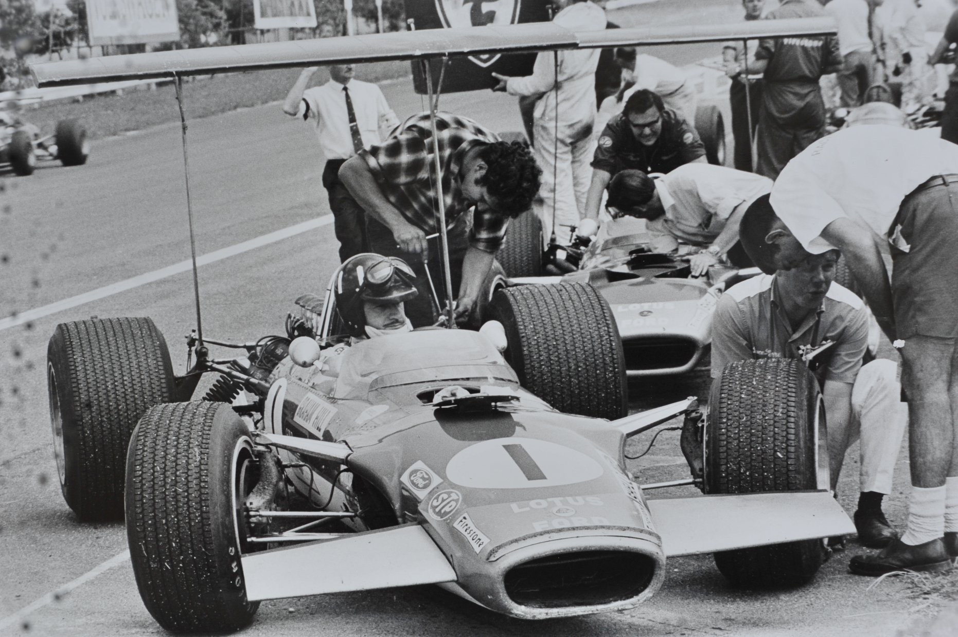 The Brit contemplates a soggy, humid day in the office to be made worse by a misfiring engine and Rindt’s masterful brio behind the wheel of the other Lotus.