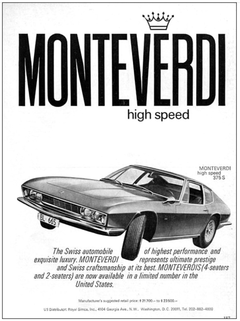 Monteverdi did good business for a couple of decades producing modified, luxurious versions of sedans and 4WDs, and later still had an abortive return to F1 in 1990 with the acquisition, and rapid demise of Onyx F1.