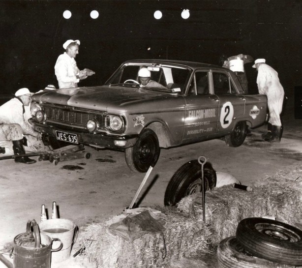 Ford Canada’s US born marketing guru, Bill Bourke (later appointed CEO of Ford Australia) was sent to the Australian outpost to assist in ‘saving the company’. His plan, without any regard for the difficulties of the idea was a 70,000 mile endurance test to be completed over nine days of Ford’s You Yangs Proving Ground to demonstrate the toughness and longevity of the cars.