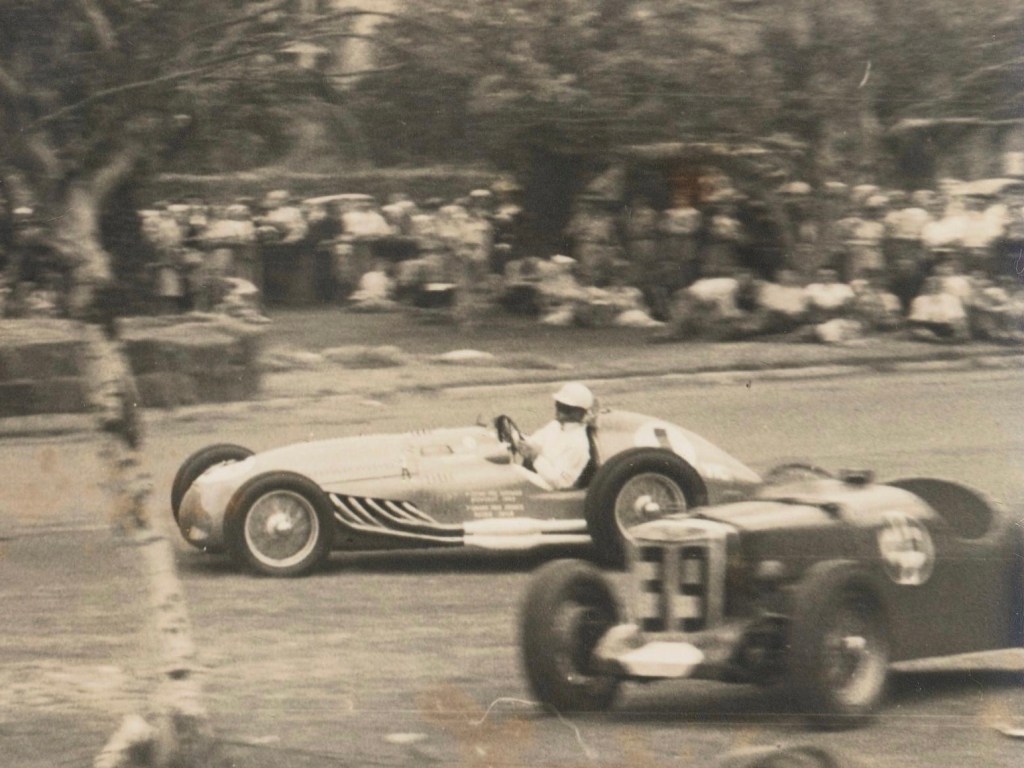 Whiteford heading up Mount Panorama on the way to victory in the 1952 AGP