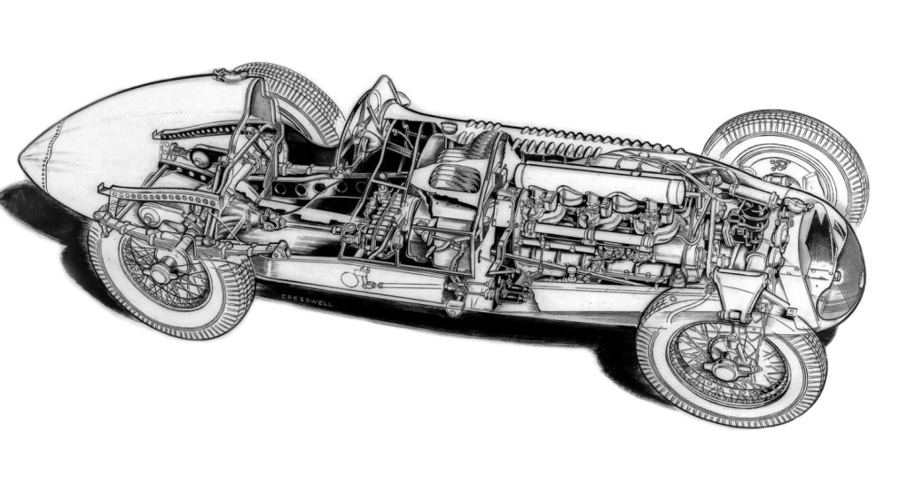 Doug Whiteford passes the abandoned Jack O’Dea MG Spl aboard 110007 during his victorious ’53 AGP run at Albert Park (The Age)1949 Talbot Lago T26C cutaway by Leslie Cresswell