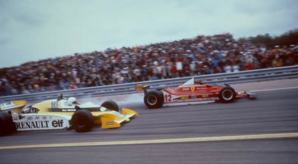 The San Marino Grand Prix grid was decimated by the ongoing FOCA/FISA turf/sporting/commercial battle, ten of the FOCA teams didn’t enter. After the retirement of the leading Renaults, Villeneuve led Pironi (as usual).