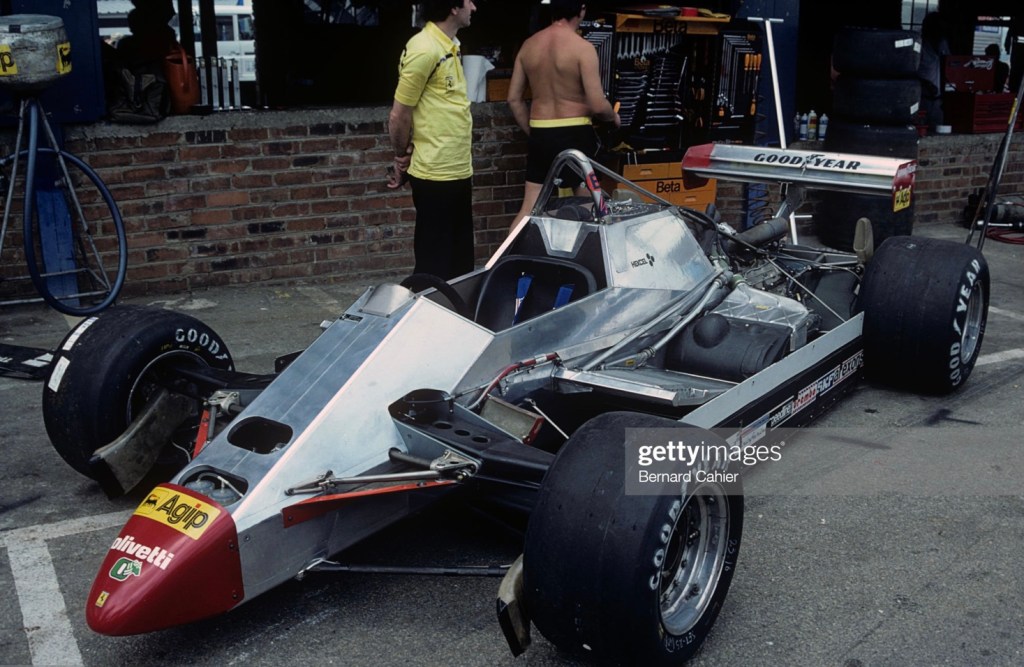 Zolder pits, May 8, 1982. GV ready for the off, Ferrari 126C2 chassis #056GV 126C2 #055 at Kyalami in January 1982. The monocoque chassis was a composite structure made of Hexcel carbon fibre and aluminium honeycomb, a far cry from the strength of the high speed carbon fibre dodgem-F1s of today