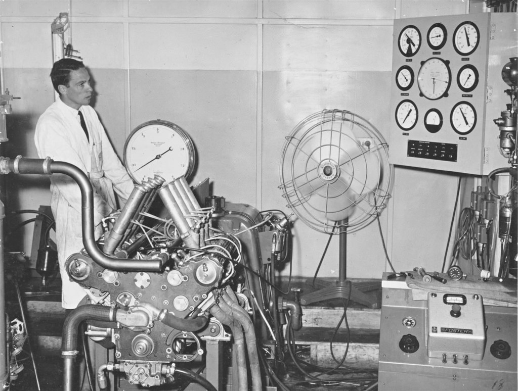 It produced circa 240bhp @ 4700rpm in the early stages of development, rising to 280bhp @ 5000rpm in 1950 when fitted with a twin-plug, twin-magneto cylinder head.
