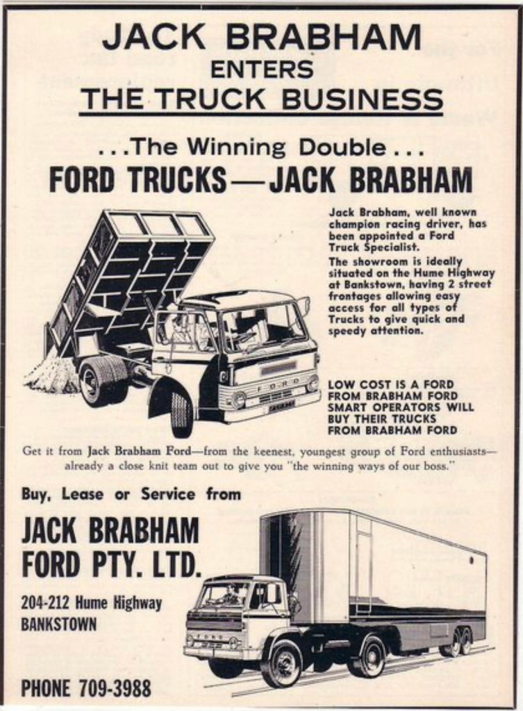 “When Jack moved BRO from the Canal Yard, Byfleet Road, New Haw Surrey premises (which had been shared with Motor Racing Developments) to Guildford in early 1966, ex-HRG machinist Ron Cousins and his equipment, lathe, milling machines etc were already there doing work for Jack Brabham Conversions which operated from an Esso Service Station in Woking.”