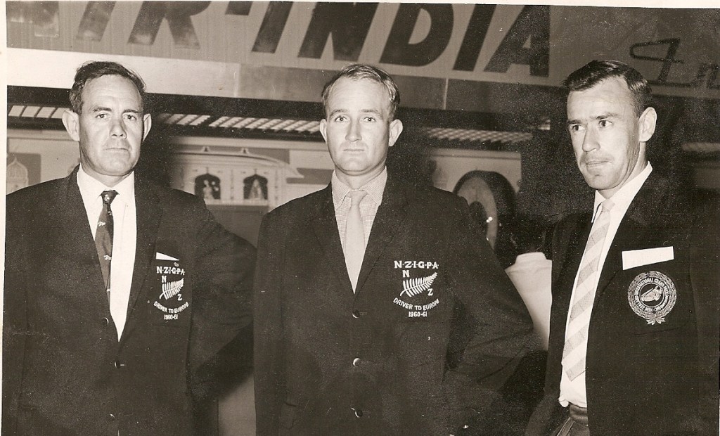 The New Zealand International Grand Prix Racing Team about to fly to London via Sydney, Singapore, Hong Kong and Bombay, arriving at the beginning of April 1961. Auckland Airport, from left is Bill Hanna, Angus Hyslop and Ross Pedersen. Don’t stress guys, it’ll be ok!