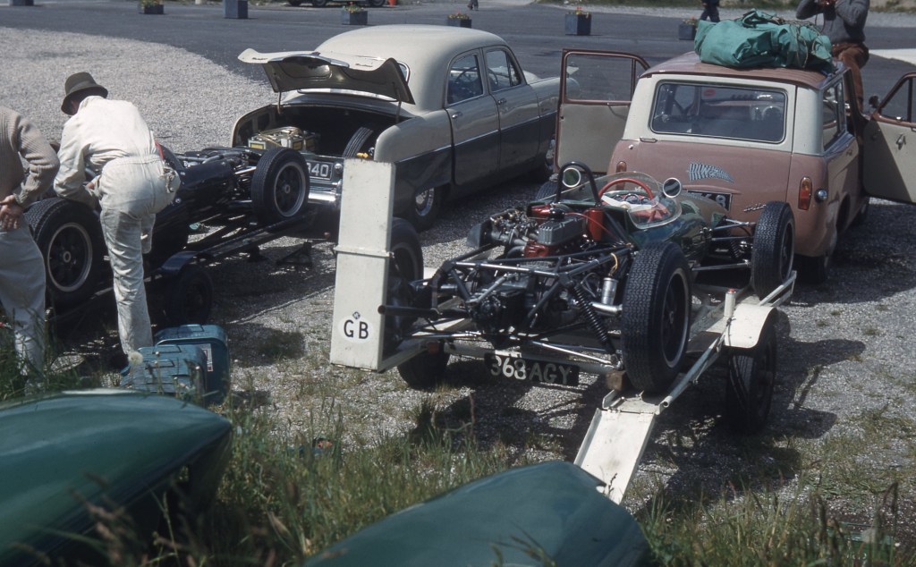 He is on the NZIGPA Driver To Europe scheme which is affiliated with Cooper Cars Ltd, and the team spend time at Cooper’s garage in Surbiton. Yet he drives a Lotus the whole time he is in Europe.