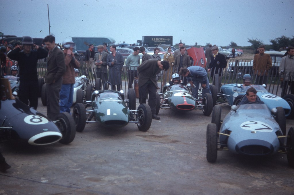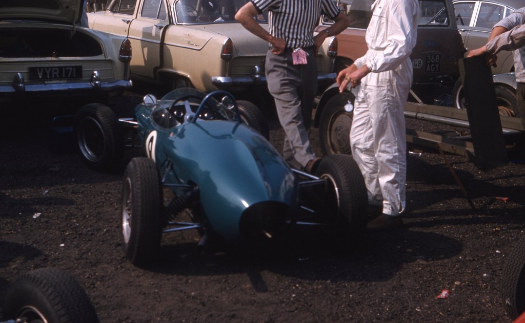 Angus’ Lotus 20-Ford/Martin in green, seen in the paddock at Goodwood above. A recap, Angus shipped his Cooper T43-Climax 1964cc over to the UK. We know this because it ‘comes back’ at the end of the season, at least as far as NZ Customs are concerned.
