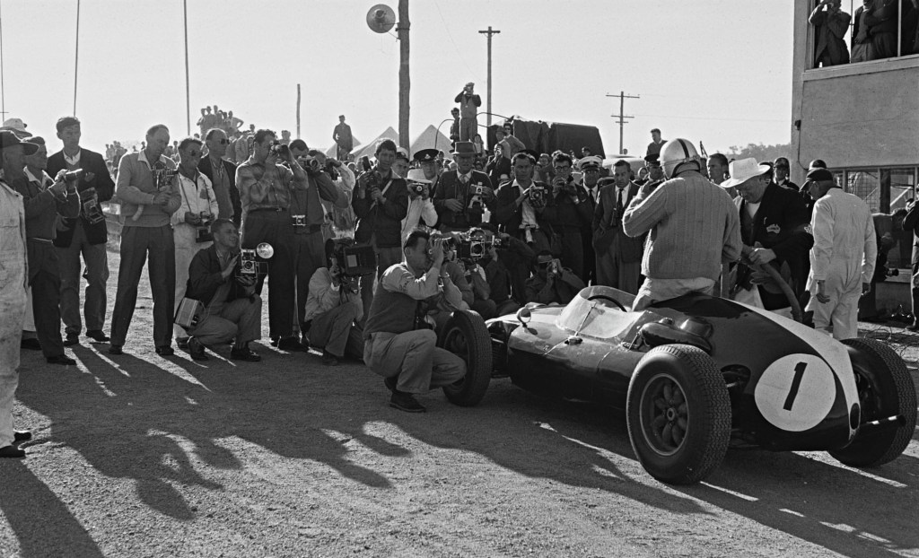 The great one raced a Cooper T51 Climax 2.5 (perhaps chassis #F2-4-59) to a convincing win from the similar cars of Bill Patterson and Bib Stillwell, albeit their cars were powered by 2.4-litre and 2.2-litre Climaxes respectively.