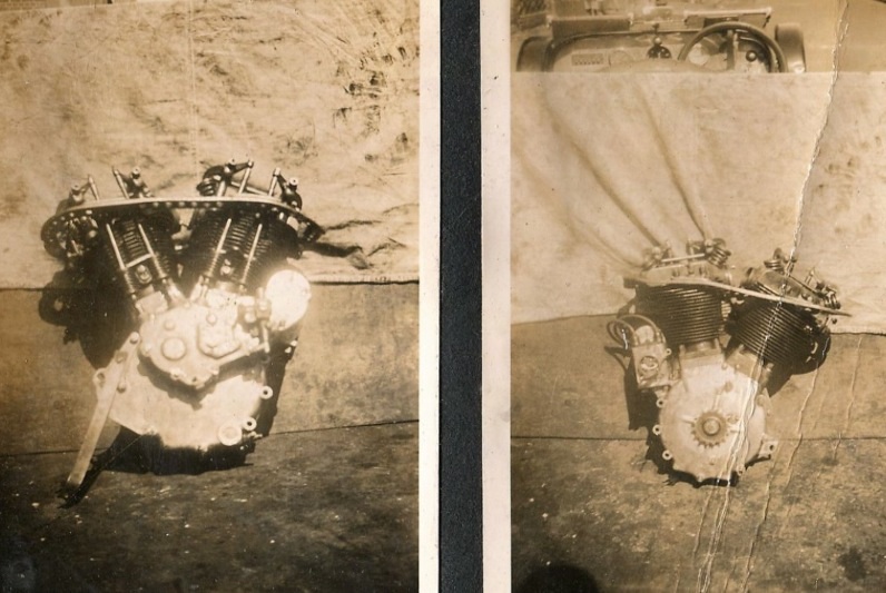 “WB Thompson’s (below) Midget car engine. Norton barrels and heads on a (1926-28) Indian Altoona crankcase.” (F Pearse)