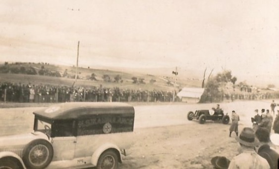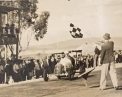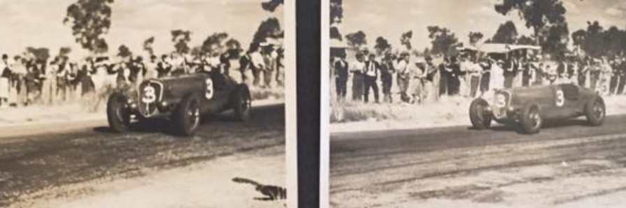 Its fuzzy but has to be Bob Lea-Wright’s Singer Nine with silverware after the 1934 Australian Grand Prix won in splendid fashion from Bill Thompson’s MG K3 Magnette.