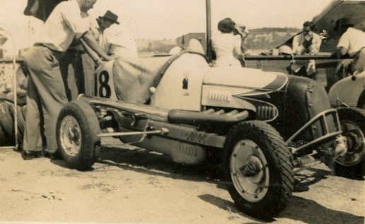 Exhaust side of Swedberg’s Offy Midget (F Pearse) Swedberg’s Offy over the line (F Pearse) Jim McMahaon’s Willys Special (F Pearse)