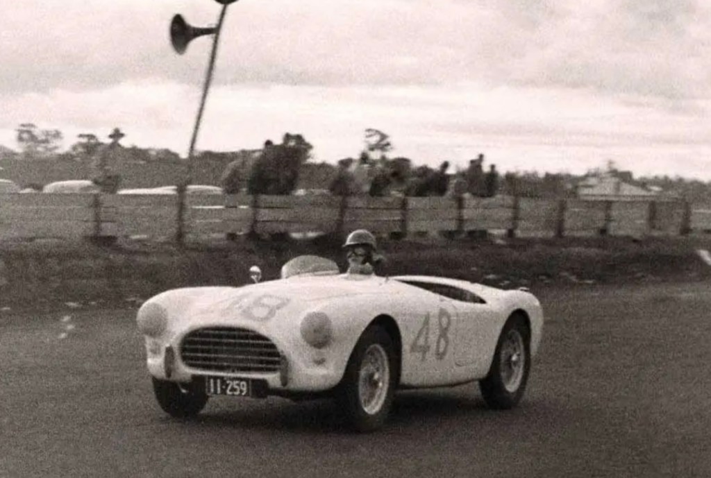 In the photo above Fred is fettling Dick Cobden’s ex-Peter Whitehead Ferrari 125 V12 s/c prior to the South Pacific Championship at Gnoo Blas, Orange in January 1955.