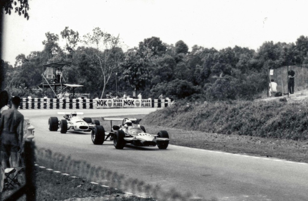 Anderson led for the first 19 laps of the race held on the Thomson Road course, but was out with engine and clutch problems. The incredible twin-Ford V8 engined beastie was as famous for its unreliability as its speed. Chan did the fastest lap at 63.25mph but he too failed to finish with engine problems.
