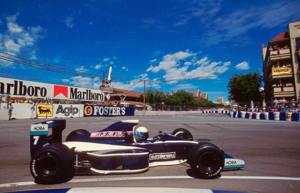 David Brabham on the East Terrace section of the Adelaide street circuit in 1990.