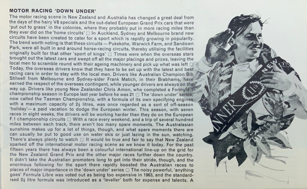 This brochure was produced by BP as a handout during the ’65 Tasman, and is wonderful, I just-gotta share it with you.
