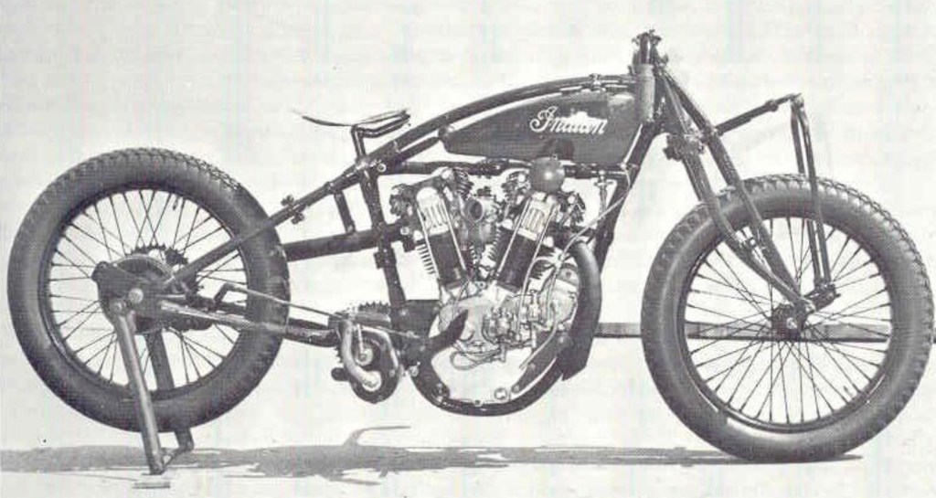 In April 1920 a 998cc side-valve, Vee-twin Indian Powerplus ridden by James McBride achieved a top speed of 99.25mph on the Daytona Beach course. The race versions of the Powerplus motor subsequently became known as the Daytona, throughout the 1920s various configurations of factory racers were built around this record setting engine.