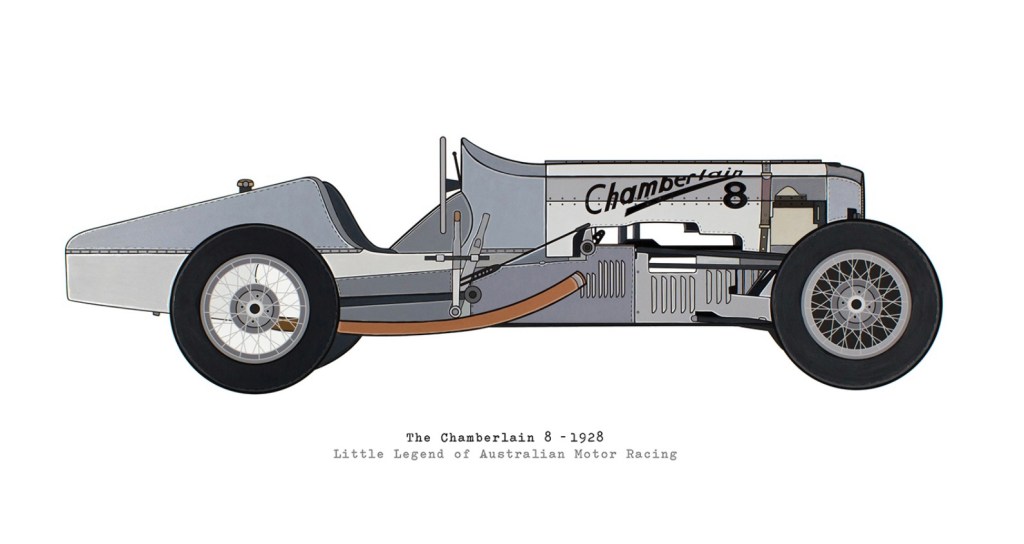 “Entered three times for the AGP at Phillip Island, the car was not successful. At the first attempt (1931) a piston seized due to the alloy being unsatisfactory, so the car did not start. By the following year the Chamberlains had made their own pistons from ‘Y’ alloy and the car completed practice without any troubles. In the race it only lasted 3 laps, when a crankpin broke.”