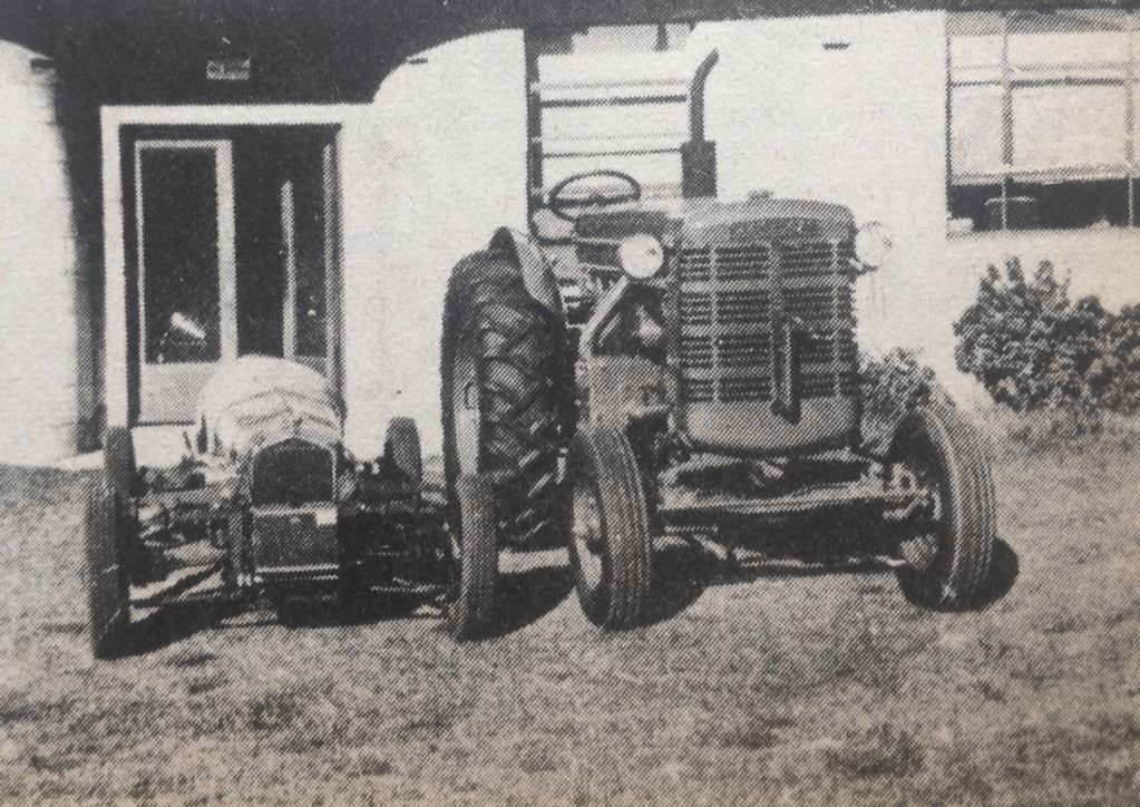 The Chamberlain 8 with the first of the Chamberlain tractors in 1946 (Cars and Drivers)