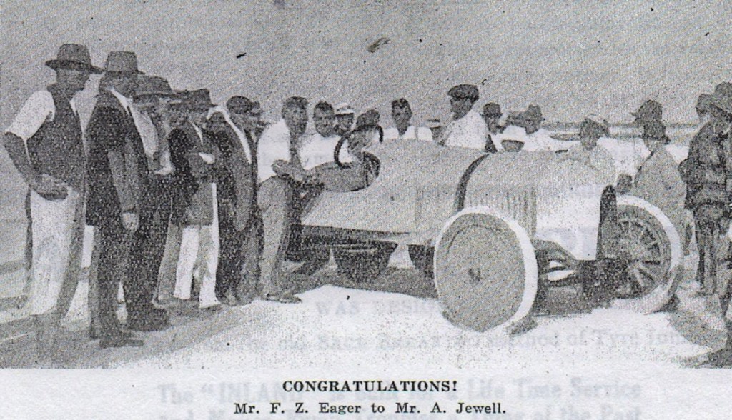 Alec Jewell aboard the Willys Overland which won “Australia’s first land speed record” in a competition with a Studebaker Six driven by Fred Eager on the Surfers Paradise sand, Christmas Day, December 25, 1916.