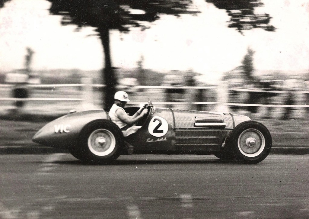 Australian international motorcyclist/master mechanic, Wilfred ‘Bill’ Balgarnie – who had represented Australia at the Isle of Man aged 22 in 1934, finishing 13th on a Velocette 350 in both Junior and Senior TTs – was also involved in the construction of the car. Balgarnie accompanied Thompson as riding mechanic in two of his AGP wins and in many of his major races.
