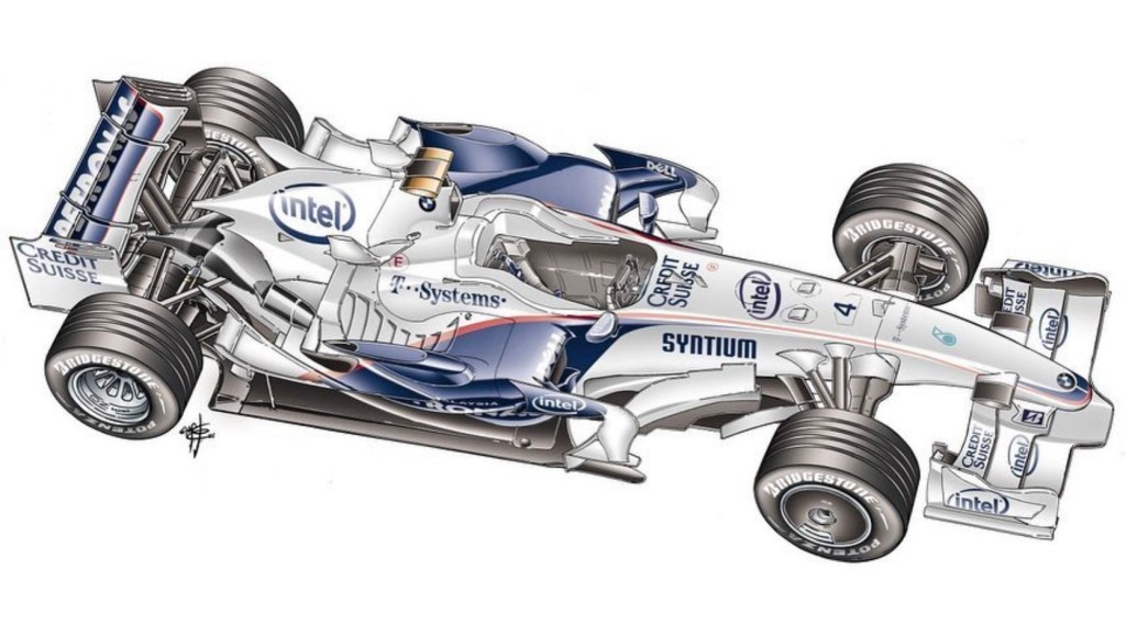 The carbon fibre chassis, upper and lower wishbones, push-rod suspended, BMW P86/8 2.4-litre V8 powered car was raced by Robert Kubica and Nick Heidfeld in 2008.