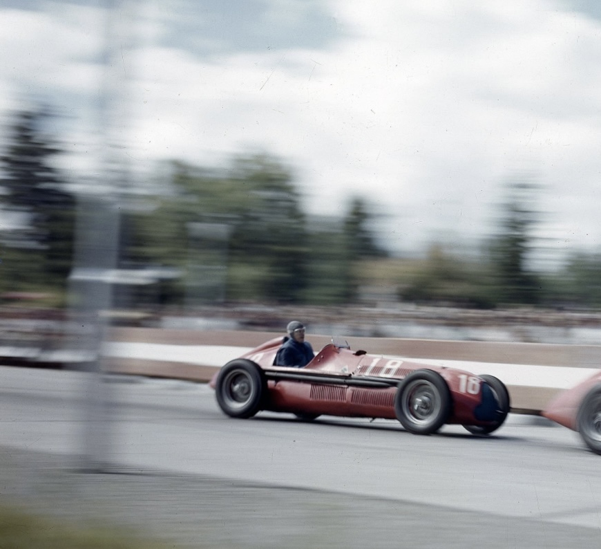 Giuseppe Farina’s Alfa 158 in Geneva during the GP des Nations weekend, July 1946.