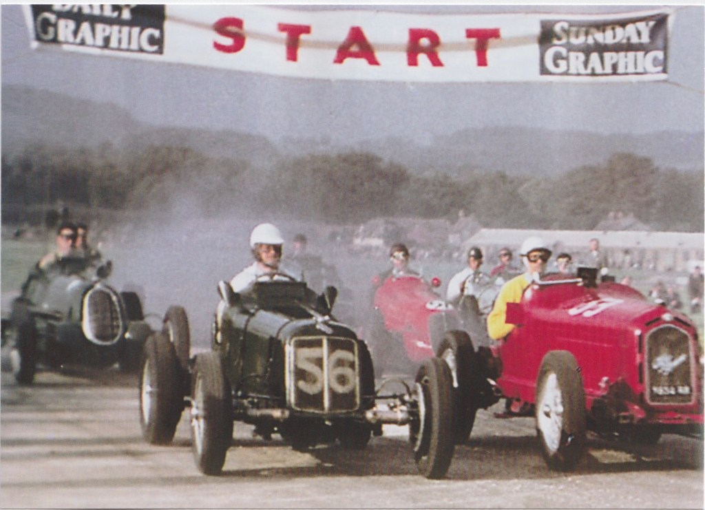 “The start of the event for racing cars over 1450cc. I can’t think why they chose that capacity. There was also a race for Formula 1 cars. The most easily identifiable cars are George Nixon #56 (ERA R2A), David Lewis (Alfa Monza), Dennis Moore, (Alfa 8C/35 rear left) and David Murray (Maserati 4CL) behind the Monza.”