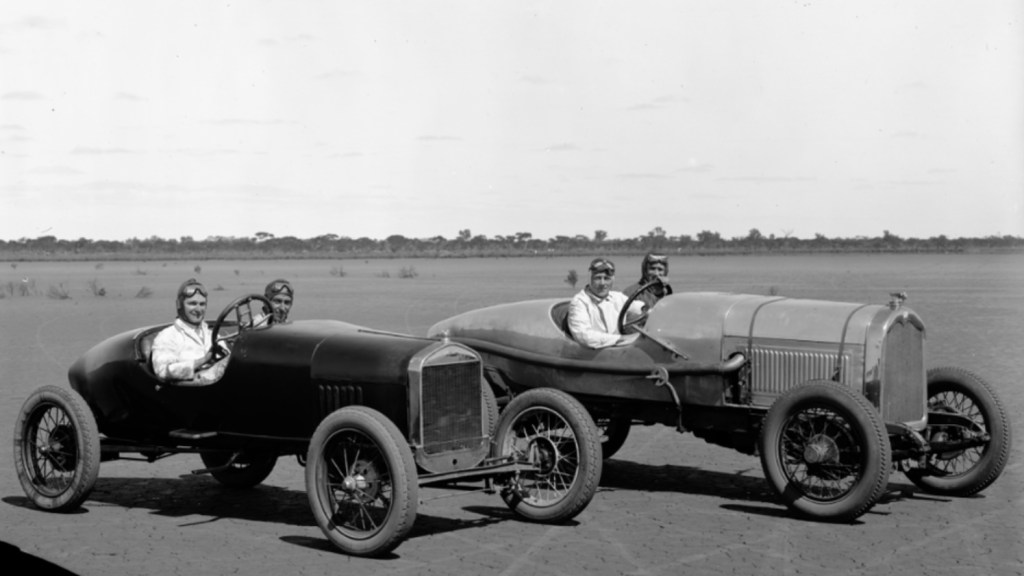 A large crash at Claremont in 1922 encouraged a shift to four-wheels. While still at Grave and Dwyer, he initially drove a Ford Model-T in hillclimbs, setting many fastest times in a car affectionately nicknamed ‘Heza Henry’. Hez had a hand-formed, torpedo-shaped rear which incorporated ‘guards for the road which were removed for competition work. It did 68mpg on the Perkolilli claypan in 1927.