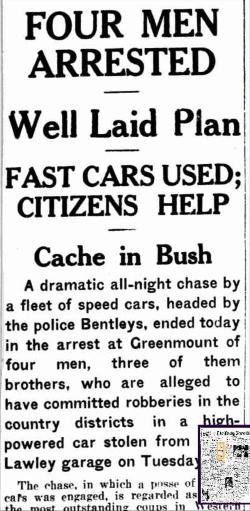 When you’ve spent a good chunk of your annual capex-budget on a couple of Bentleys, the Perth Polizia PR department worked the local papers hard to ensure the Bentley Patrol bagged as much of the crime-solution-limelight as possible, however tenuous the connection between the misdemeanor and WO’s finest.